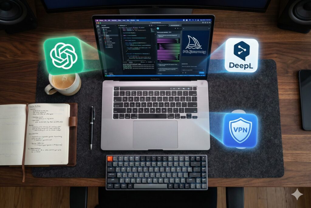 - 海外ツールへのアクセス: 一部のAIツールや海外サービスは、日本からのアクセスを制限している場合があります。VPNを使えば「アメリカからのアクセス」としてスムーズに利用できます。