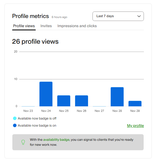2025年11月5週(11月23日〜11月29日)のUpwork収益は、