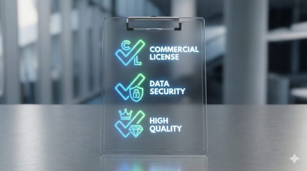 これが大前提です。多くの無料AIツールや、画像生成のモデルの中には「個人利用はOKだが、商用利用(金銭が発生する利用)は不可」というものが存在します。 ここを確認せずに納品物にAIを使用するのは、無免許運転でタクシー営業をするようなものです。利用規約(Terms of Service)を必ず確認し、商用利用が明確に許可されているプランを選ぶ必要があります。
