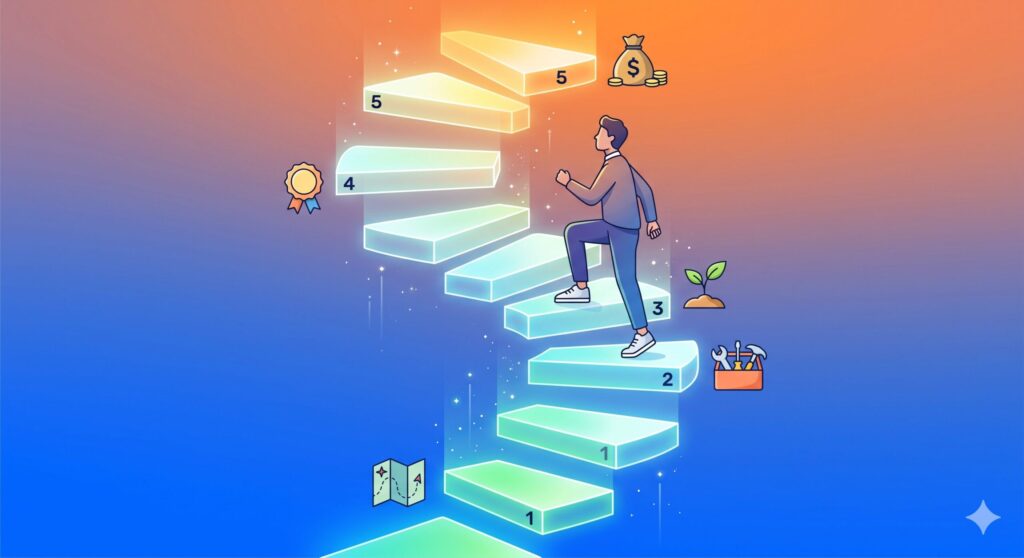「何から始めればいいか分からない」という状態を抜け出すため、具体的な行動手順を5つのステップに分けて解説する。この通りに進めれば、迷うことなくスタートラインに立てるはずだ。