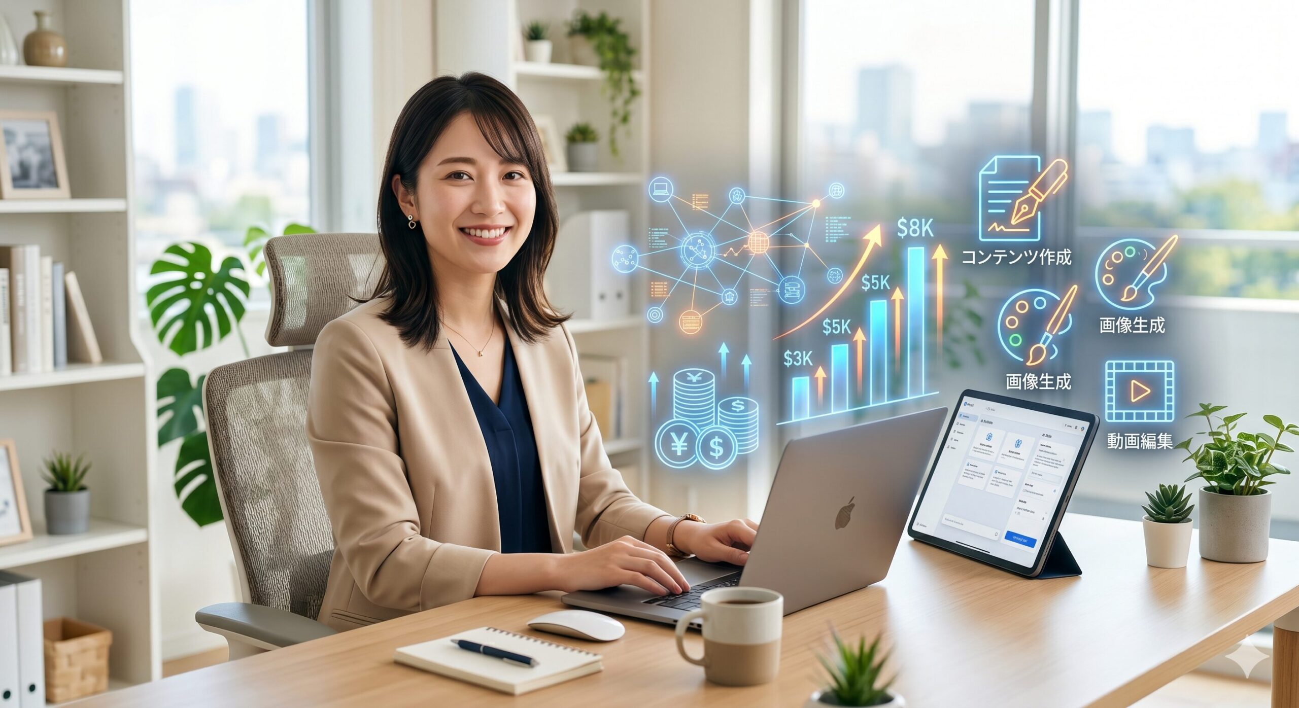 生成AI副業とは、これらのAIツールを「外注スタッフ」や「優秀なアシスタント」として使いこなし、クライアントへの納品物を作成したり、自身のコンテンツビジネス(ブログやSNSなど)を自動化・効率化して収益を得る活動を指す。