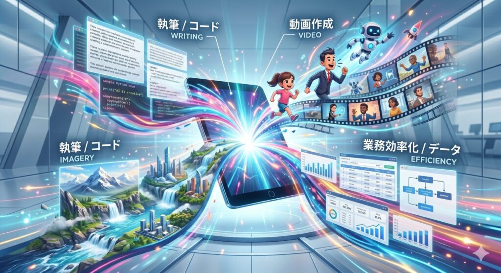 - ゼロから1を生み出す苦痛からの解放: 白紙の画面を前に「何を書こう」「何を描こう」と悩む時間がなくなる。AIが瞬時にたたき台(ドラフト)を作ってくれるため、ゼロイチの精神的なハードルが劇的に下がる。