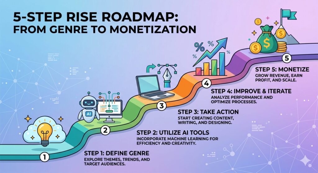 ここからは、いよいよ具体的な「生成AIの副業の始め方」を5つのステップで解説する。このロードマップに沿って行動すれば、迷うことなく副業をスタートできるはずだ。