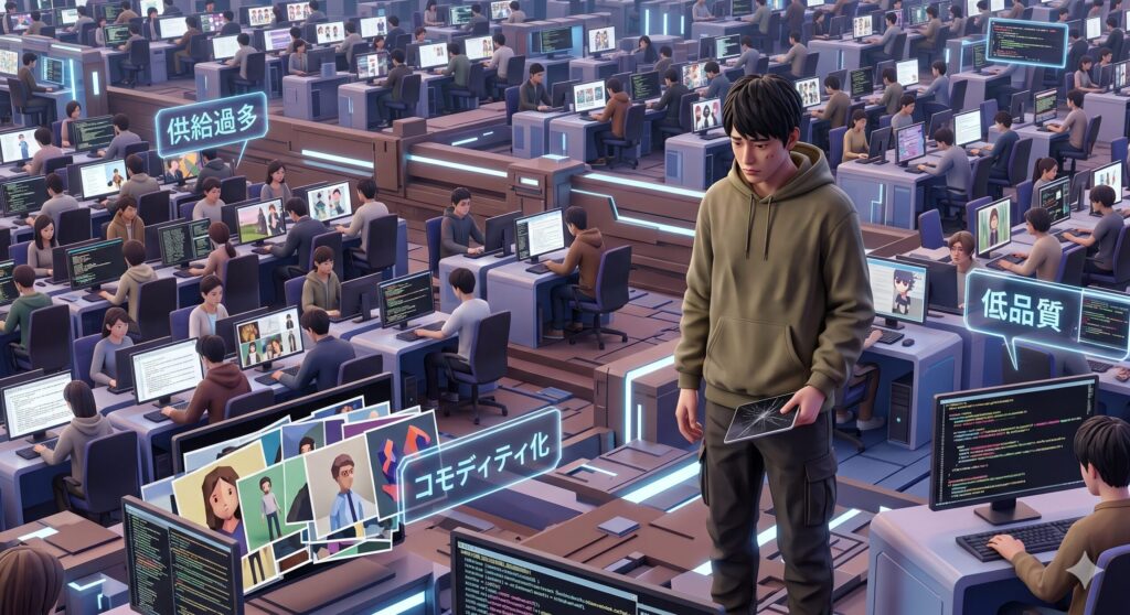 最大の理由は、圧倒的な「供給過多」である。AIツールの普及により、副業のハードルは歴史上かつてないほど劇的に下がった。