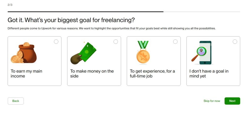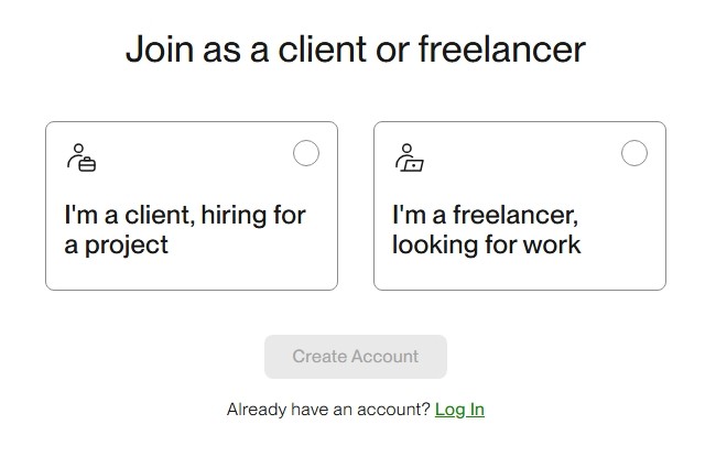 Sign Upをクリックすると、次にクライアントかフリーランサーを選ぶページにきます。