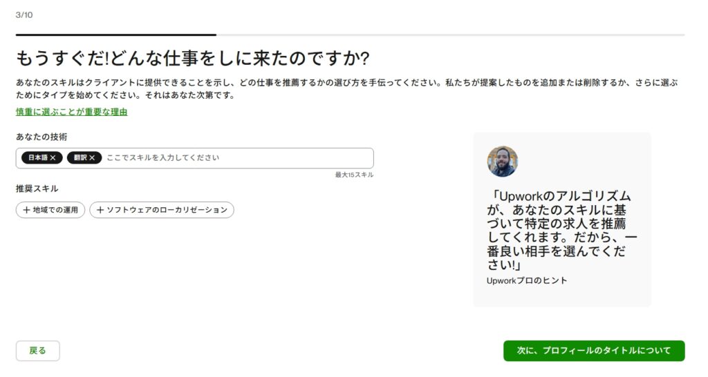 しかし、プロフィールの出来栄えは仕事の採用率に大きく関わってきますので、これ以降もブラッシュアップが必須です。プロフィールは別記事で徹底解説します。