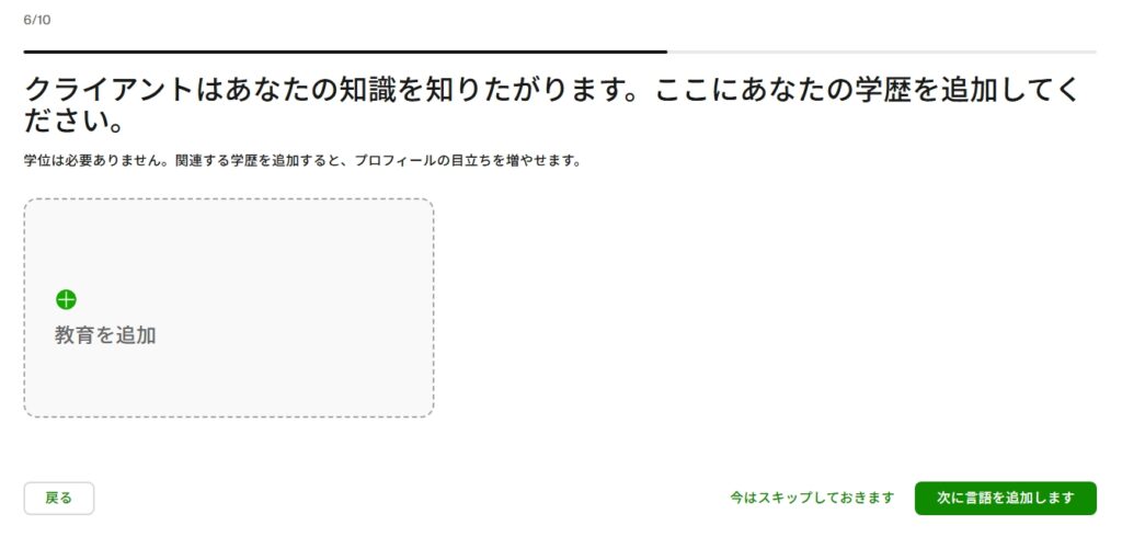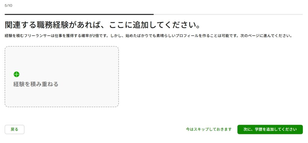次は関連する職務経験、学歴を追加しましょう。この時点ではスキップしても構いません。