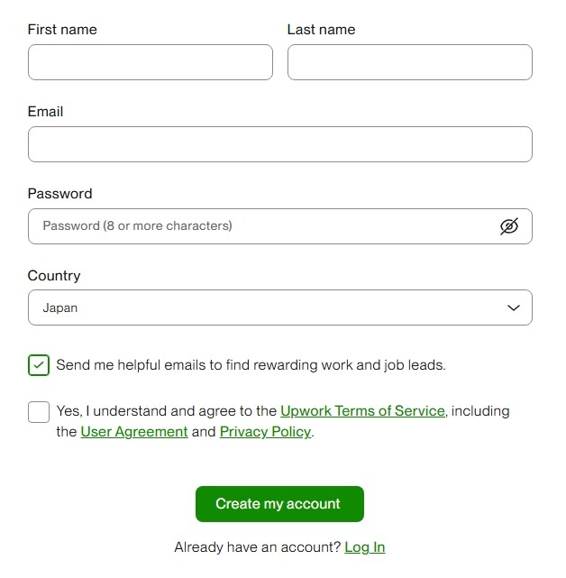 まず最初に安心ポイントから。Upworkの登録は完全無料です。